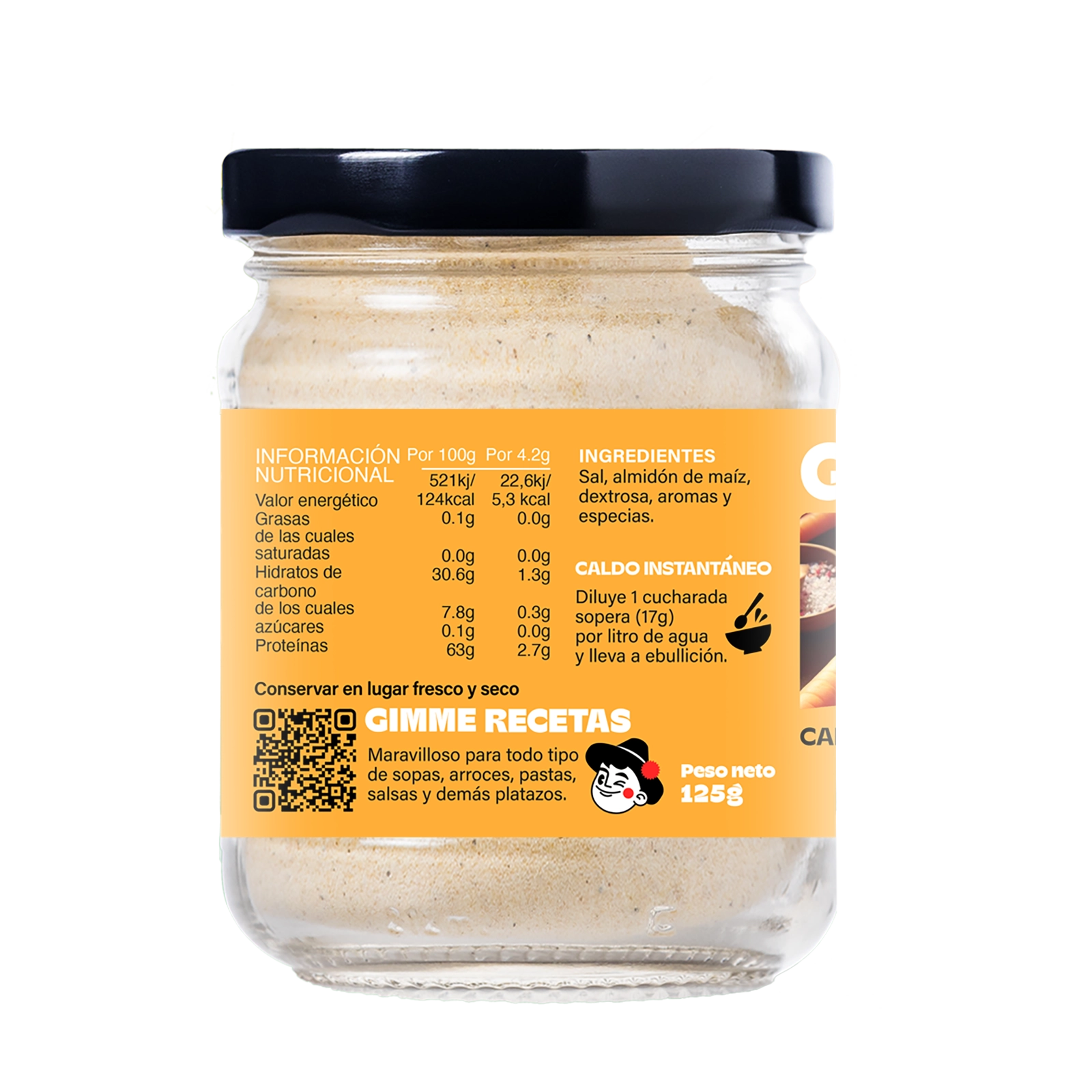 Eleva tus recetas con el inigualable sabor de nuestro Preparado Vegetal para Caldo Sabor Pollo de Gimme Sabor. Diseñado para ser tu aliado perfecto en la cocina, creado para todas las personas que buscan opciones saludables y prácticas, este preparado sin gluten, sin glutamato y libre de alérgenos es la solución perfecta para enriquecer tus platos. Ideal para arroces, tacos o consomés, nuestro caldo vegetal te permite disfrutar de los sabores tradicionales sin comprometer tus valores.